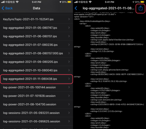 如果列表中没有以「log-aggregated-」 开头的分析文件,则需先开启「共享 iPhone 分析」功能,等到第二天就会生成该分析文件了,也可以直接将日期先后调一天即可立即生成分析文件。