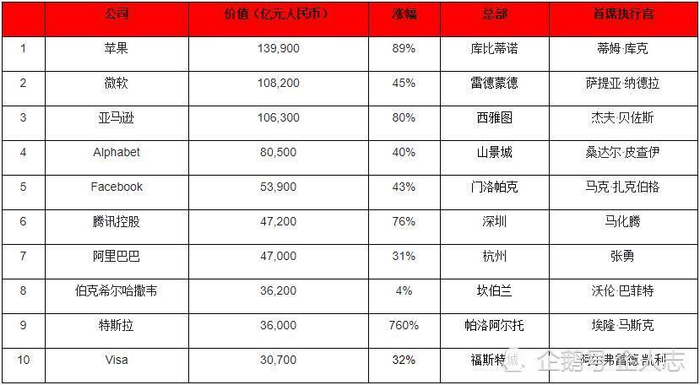一句话,公司值多少钱,由市场说了算,而且,榜单把所有国家的国有企业都排除在外了,真正算得上是全球企业之间纯粹的身价大比拼。