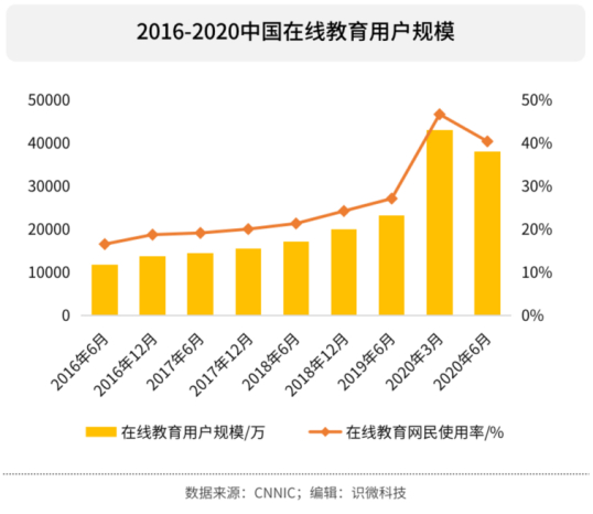 小学生们的“同仇敌忾”并没有阻挡线上教育的快速发展,从2019年6月到今年3月底,在线教育用户规模增长是过去3年的两倍多。