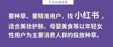 小红书适合美妆护肤、母婴美食等以年轻女性用户为主要消费人群的品牌进行投放种草,用户种草心智成熟,转化率相对较高。