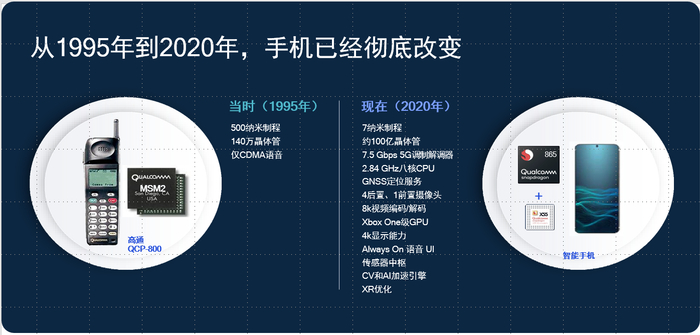 今天我们对于无所不能的智能手机似乎习以为常,短短二十年间手机从功能机进化到智能机,从单纯的通话到今天可以融合多种设备的功能,从通讯设备到智能化的生活助手、生产力工具,这背后也是高通技术路线的选择。