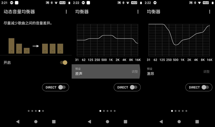 实际体验下来,个人感觉在开启动态音量均衡器后,歌曲的音量输出会变得更加均匀。而将均衡器的音效调为激昂时,效果最为明显,你会感觉声音会向前靠拢,低频部分得到了进一步增强,其他几个音效变化不是太大,普通用户很难听出差异。