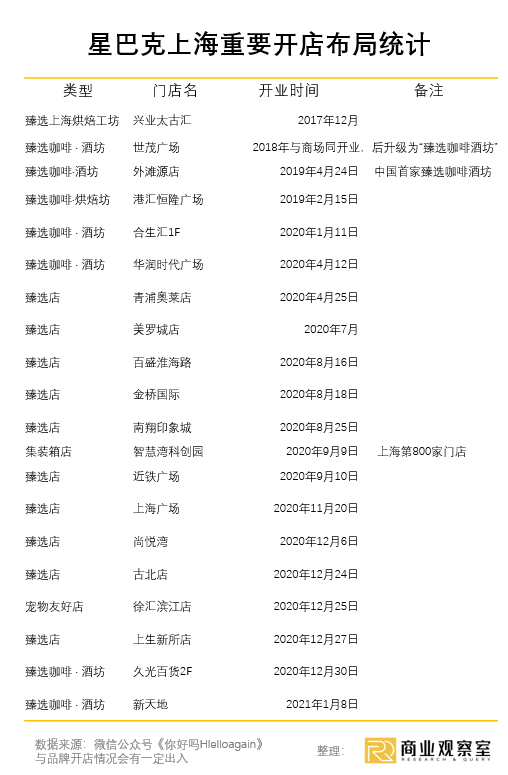 根据网络公开资料,我们尝试统计了一下最近星巴克在门店拓展方面,于上海市场做出的事件: