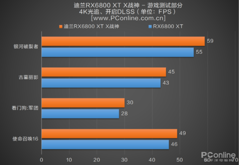 从测试结果可以看出,在2K分辨率下除了看门狗军团外迪兰RX6800 XT X战神开启光追DLSS均能够畅玩,但4K分辨率下相比2K分辨率,游戏帧数的差距就十分明显了。考虑到迪兰RX6800 XT X战神是AMD第一代支持光线追踪技术的显卡之一,仍有提升空间,相信后续AMD会通过BIOS更新等提高光追游戏性能。
