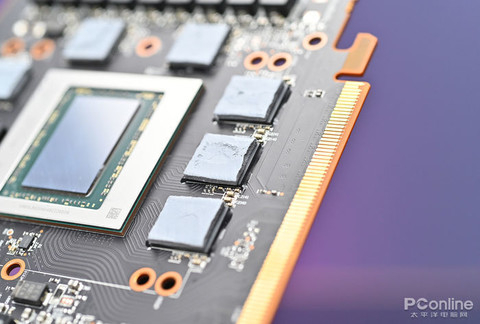 从核心细节可以看到,跟公版设计一致,NAVI 21核心表面干净整洁没有任何参数信息。从AMD官方数据能了解到,NAVI 21核心采用了7nm工艺,可以看到核心面积相当大。
