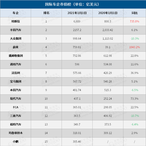 原标题:海外上市车企市值榜:特斯拉蔚来疯涨 丰田领跑传统车企 来源:盖世汽车资讯