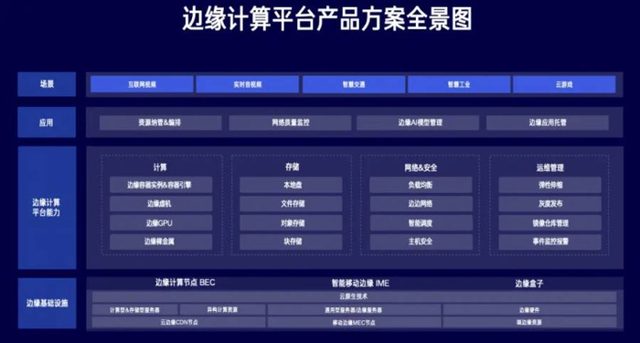 基于边缘计算节点 BEC、智能移动边缘 IME 和边缘盒子硬件,百度智能云形成了边缘云三层算力布局,是目前业界最完备的边缘计算体系。