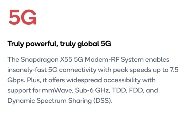 与865相同,高通骁龙870同样需要外挂骁龙X55基带。所以网络方面的参数没有区别,这里不再赘述。