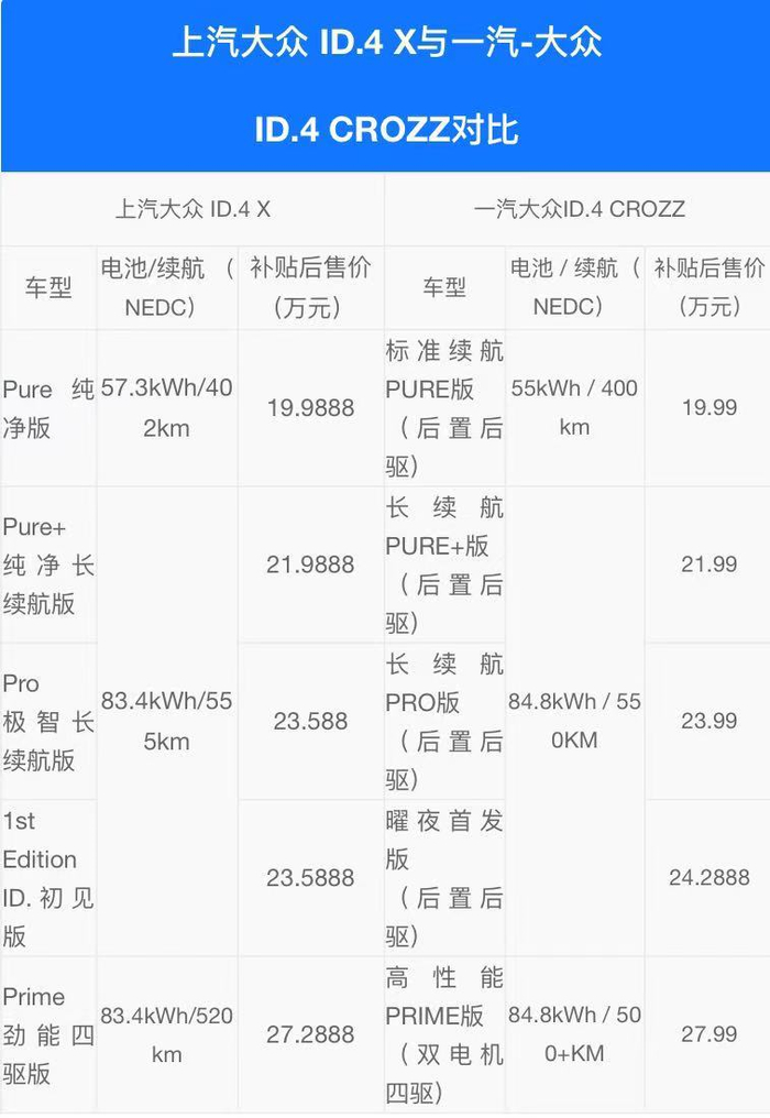 400km续航卖20万 南北大众ID.4双双PK特斯拉
