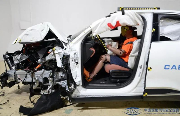 而蔚来EC6除了耐撞性与维修经济性指数获得A(良好)评级外,其它均为G(优秀)评级。在正面25%偏置碰撞中,蔚来EC6的A柱没有较大的弯曲,轮辋在受到撞击后完全破碎,可以保证其不会对驾驶舱过多的入侵。