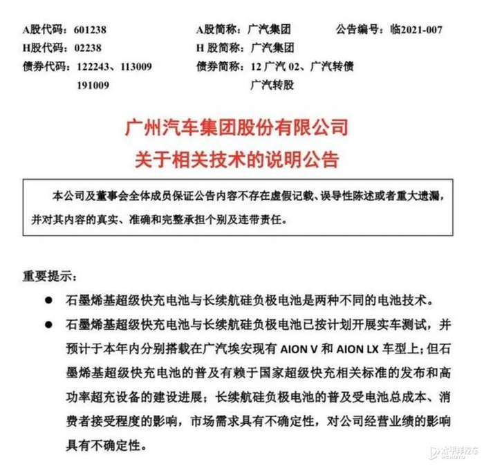 “既能跑1000公里,又能几分钟充完电”说的正是广汽的石墨烯基超级快充电池。随着事件的发酵,广汽集团不得不正式作出回应:快速充”和“长续航”的特性将分别体现在两种电池上,并非是在一款电池上同时兼顾两种特性。
