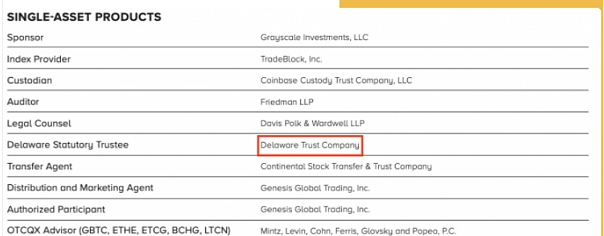 根据德拉威尔州政府部门网站公布的文件显示,灰度已经开始在布局新的信托基金,名为Delaware Trust Company的公司于2020年12月18日注册了一档名为“Grayscale Chainlink Trust”的法定信托。申请注册的虽然不是灰度Grayscale,但Delaware Trust Company却是灰度的信托服务提供商,各种迹象都表明新注册的公司其实是灰度在2021年的发展计划。除此之外,还有Basic Attention Token Trust、Decentraland Trust、Livepeer Trust与Tezos Trust的公司名称在被Delaware Trust Company同时注册。