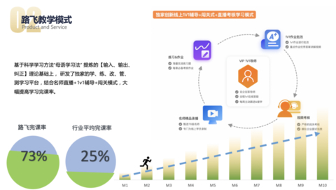 虽然这样成本比纯直播高不少,但是能大幅度提高学员的完课率。相比行业平均仅20-30%的完课率,路飞学城的大课学员综合完课率高达73%,多数学员,只要正经认真学,都能在6-8个月内完成课程 。