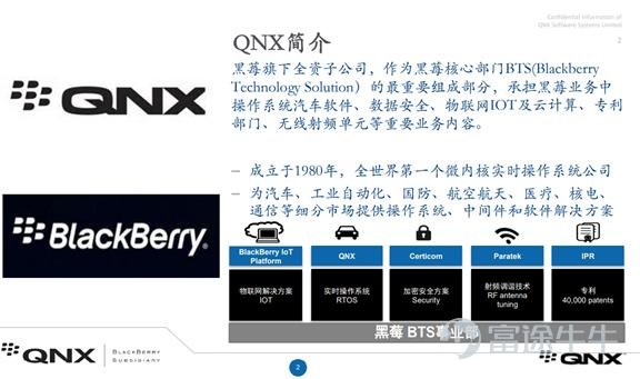 QNX是黑莓旗下全资子公司,成立于1980年,是全世界第一个实时操作系统公司。