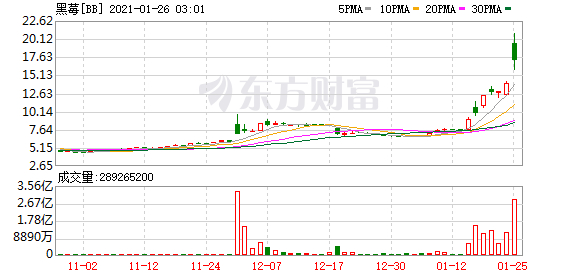 知名通讯技术企业黑莓(BlackBerry Limited)近期股价持续大涨,消息面上,2020年12月初,黑莓宣布与亚马逊达成协议,将共同开发和销售Blackberry智能汽车数据平台IVY;2021年1月,公司管理层在摩根大通第19届年度科技&汽车论坛上,高调宣布将加速推进智能汽车操作系统的业务扩张。