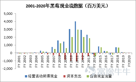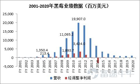 从业绩上看,2008年黑莓9000系列机型推出后,帮助公司在2011年达到业绩顶峰,实现年营收199亿美元,净利润34亿美元。