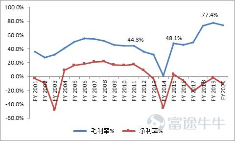 通过向软件服务转型,黑莓当前毛利率水平已经远超手机时代: