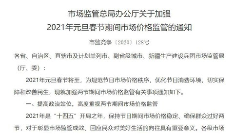 实际上,早在2020年12月21日,国家市场监管总局办公厅在《关于加强2021年元旦春节期间市场价格监管的通知》(市监竞争〔2020〕128号)中,就三次提到“茅台”。