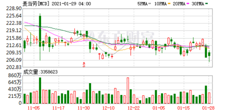 麦当劳预期2021年的销售额预计将比同比增长7%至9%,按固定汇率计算为同比增长5%至7%;麦当劳预计2021年的营业利润增长4%至6%;预计经调整的2021年每股收益在2.91美元至2.96美元之间。