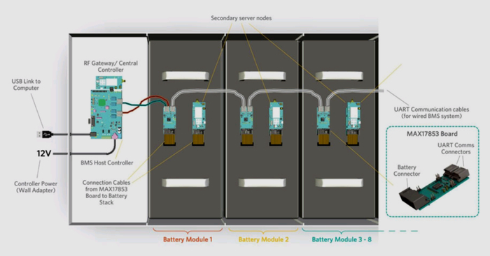 2020年初的CES(国际消费类电子展)上,Maxim Integrated(同年7月ADI宣布对其收购)演示了无线BMS,通过取代电池组和BMS模块间的传统有线连接,减轻了电线和连接器重量,消除模块间隔离组件降低了成本、制造复杂性并缩短制造时间,电池组形状也更加灵活。
