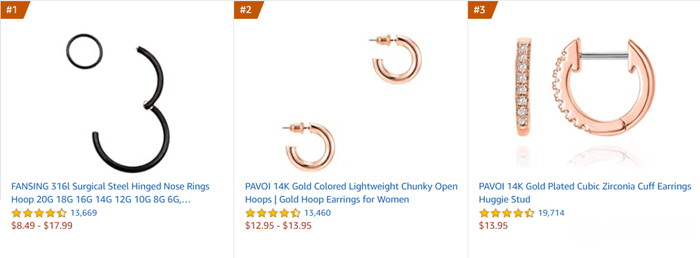 从上表可以看出,Etsy 上销量很高的 3 类商品,很多同品类中国卖家在亚马逊上做生意。以上出现的卖家中,有的背后是电商企业,也有的是个人卖家经营。从地区分布来看,这些卖家主要分布于深圳和浙江地区,都是国内做跨境电商的热门地区。一家来自杭州的首饰类卖家 Fansing,它的一款鼻环箍的销量甚至排在了亚马逊首饰类商品销量榜的首位。