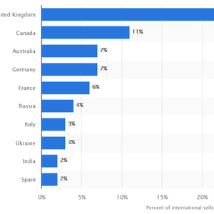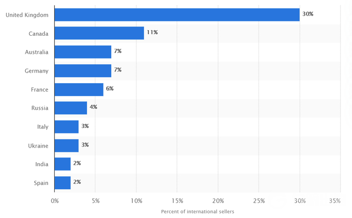 除美国以外 Etsy 上卖家数量 Top10 的国家丨数据来源:Statista