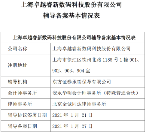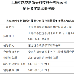挖贝网 2月2日,上海卓越睿新数码科技股份有限公司(下称“卓越电子”)与东方证券签署上市辅导协议,并于近日在上海证监局备案。