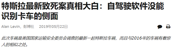 监管机构的调查报告称:“最初的车辆数据显示,特斯拉撞上半卡车时正在以68英里的时速行驶。初期数据或视频都未显示驾驶员或ADAS执行了规避操作。”