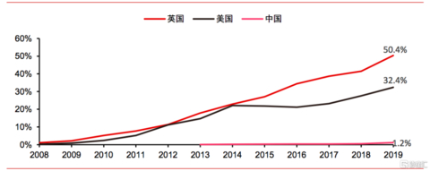 从2016年-2019年,中国的电子烟渗透率从0.4%增长至1.2%,电子烟客群大概介于300万至500万之间,渗透效果明显有别于英美两国。