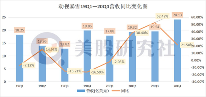 财报显示,动视暴雪第四季度净营收为24.13亿美元,高于该公司此前预期的20.01美元,相比去年同期的19.86亿美元同比增长21.5%。