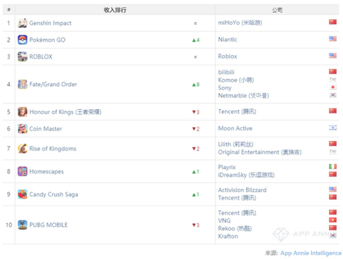 另一方面手游市场马太效应愈演愈烈。App Annie发布了2020年12月移动游戏指数排行榜。其中,12月全球iOS & Google Play综合收入排行的前三位被《原神》《精灵宝可梦GO》和《ROBLOX》三款游戏收入囊中。