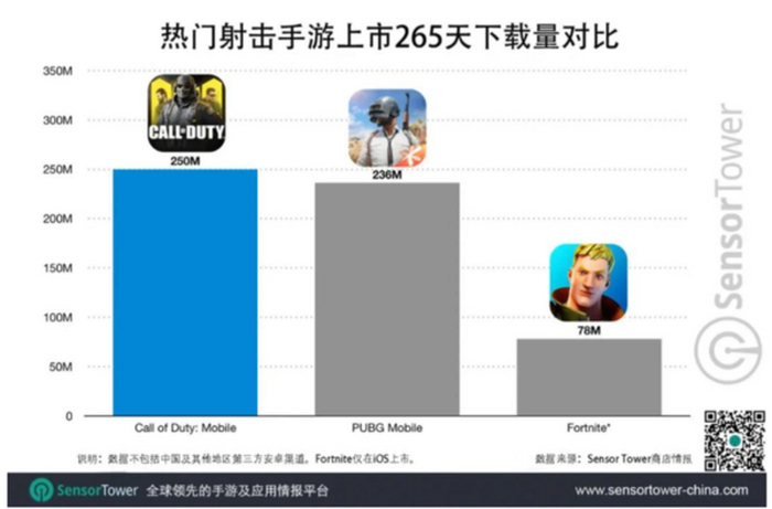以动视暴雪的手游《使命召唤手游》为例,据SensorTower数据显示:从2019年10月1日在海外正式公测开始,到第265天截至,下载量就达到2.5亿。同时使命召唤手游》在全球App Store和Google Play的总收入达到3.27亿美元。