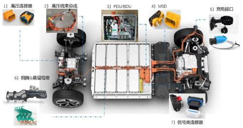 公司新能源汽车连接系统产品主要包括高压连接器、高压线束总成、PDU/BDU(电源分配单元总成)、MSD(手动维护开关)、充电接口/充电枪座等等。