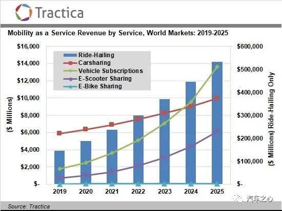 根据市场研究机构 Tractica 预计,到 2025 年,MaaS 的全球市场将以 24% 的复合年均增长率(CAGR)增长,成为一个价值超5600 亿美金的市场。
