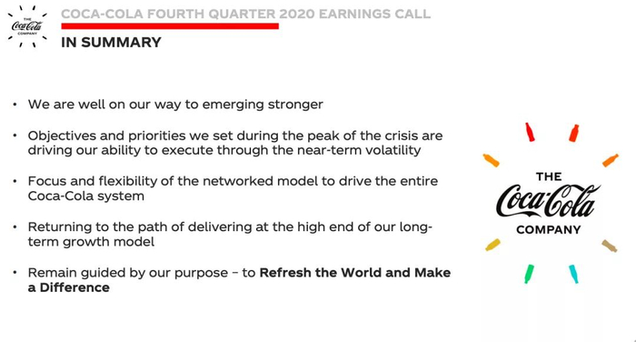 “尽管仍存在与疫情相关的不确定性,但我们对未来的复苏有了更高的能见度,并有信心我们的行动将持续减缓危机的影响。”可口可乐公司今天表示。