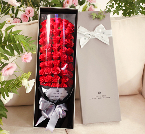 对于许多女孩子来说,红玫瑰花束是难以抗拒的浪漫礼物,艳丽的色彩、芳香的花瓣让爱的表白热情又炽烈。I'MHUAHUA 51朵香皂玫瑰花礼盒,献给挚爱的“女王陛下”,永生花持久留香,象征着对她的爱情永不褪色!