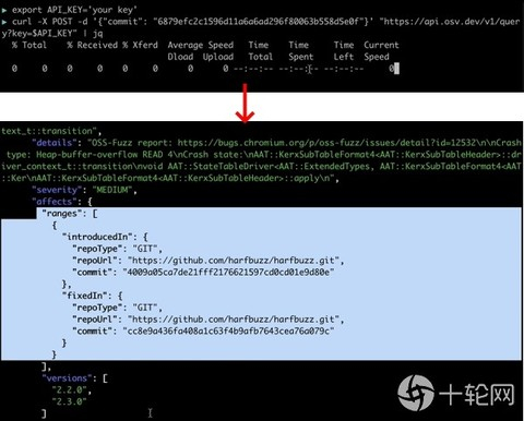 OSV借由提供用户查询漏洞的API,以自动化执行漏洞分类(triage)的流程。大致场景如下:首先,用户输入组件版本或commit hash进行查询,接着OSV就会去寻找影响到某OSS版本的漏洞,再以机器可读的JSON格式回传影响该组件的一组漏洞。拿到这清单后,用户就能根据修补程序的metadata来选择修补程序,或更新到之后的软件版本中。
