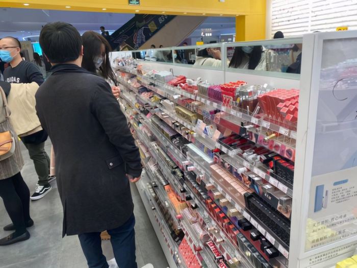 在KKV北京合生汇店的门口,24岁的唐唐(化名)对身边的男友说。