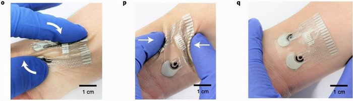 其次,搞定机械性能。在日常生活中,当皮肤贴片预期拉伸变形时,机械稳定性是决定皮肤贴片传感器可靠性的另一个关键因素。