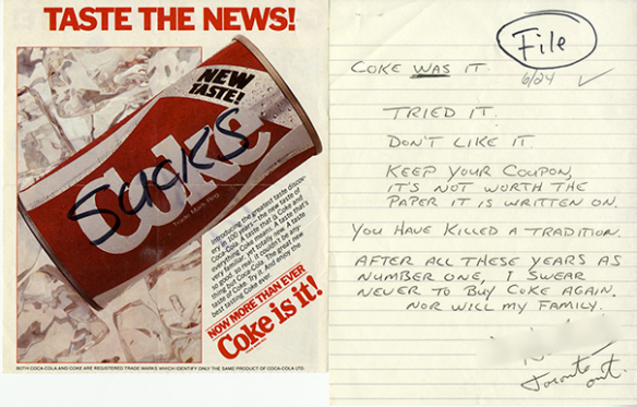 1985年,可口可乐公司试图用一款“新可口可乐”,取代原先的经典可口可乐。