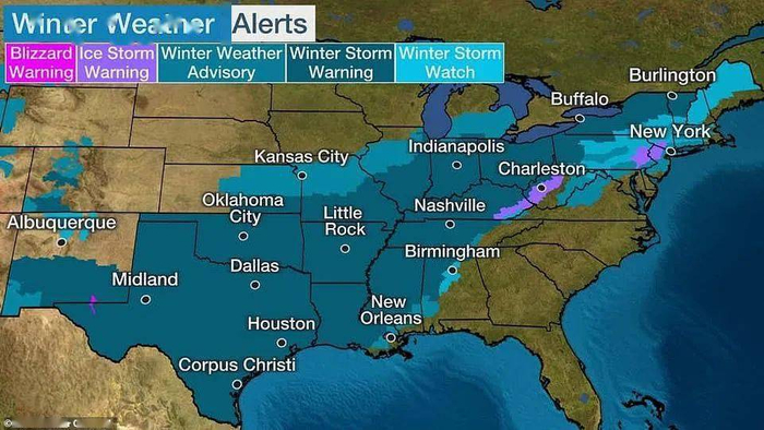 另外,美国的暴风雪及严寒天气仍将持续数日。根据美国国家气象局发布的“冬季风暴预警”,美国当地时间2月17日后还将迎来一次冬季风暴,将先后波及美国南部、中西部和东北部多州,寒冷天气和道路结冰状况预计将持续数日。受影响人口约1.15亿。