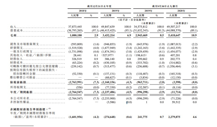 值得注意的是,创立14年京东仍未实现盈利,但净亏损呈现逐年收窄趋势。2018年、2019年及2020年前9个月分别为28亿元、22亿元及1170万元,降幅明显。