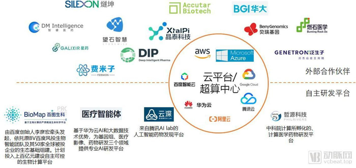 由于AI新药研发发展的成熟度,几大科技巨头都通过自己的云平台为AI新药研发提供支撑。这些云平台一方面向AI新药研发企业开放自己的算力,帮助AI新药研发企业更快的实现自己的研发目标。另一方面,部分科技巨头逐渐不再满足于通过自己的合作伙伴对外输出,走上了自建平台,直接向医药企业提供服务的道路。