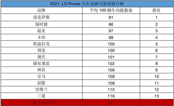 印象流真的不可靠?2021 J.D.Power可靠性榜单出炉 雷克萨斯居首 奔驰、特斯拉表现不佳