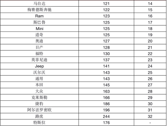 拿大众来说,由去年的第六位下降至今年的23位,平均100辆车的问题数量从去年的113个增至163个,只有克莱斯勒、捷豹、阿尔法罗密欧和路虎排在其后。本田排名的下降幅度也较明显,从去年的第14位跌至第22位。
