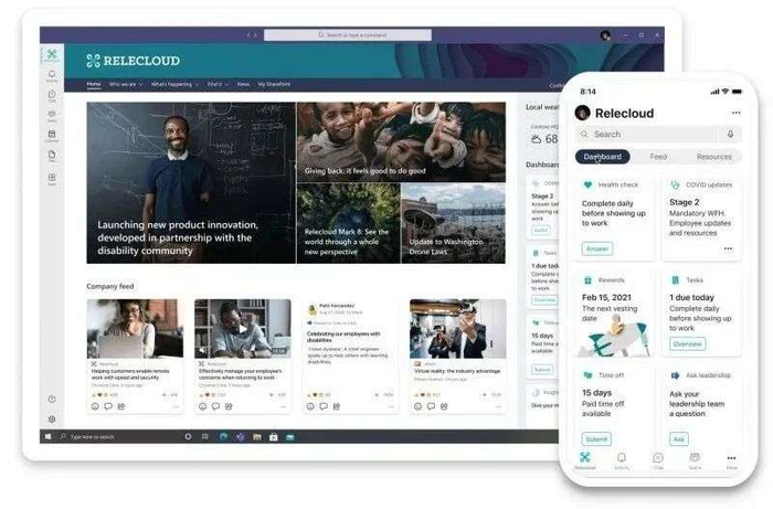 微软表示,Viva Topics与包括SharePoint和Microsoft Search在内的微软应用程序配合得很好,更多亮点将于2021年集成到Microsoft Teams、Outlook和其他Microsoft 365应用程序的hub中。Viva Connections:数字化工作场所的个性化网关