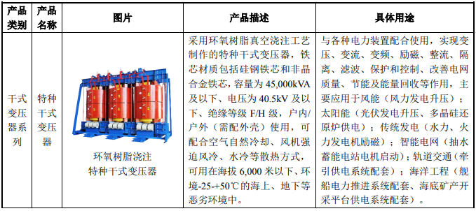 在客户方面,招股说明书披露,该企业是国内外少数可生产风力发电专用干式变压器的企业之一,是全球前五大风机制造商的维斯塔斯(VESTAS)、通用电气(GE)、西门子歌美飒(SIEMENS Gamesa)的风电干式变压器主要供应商之一。
