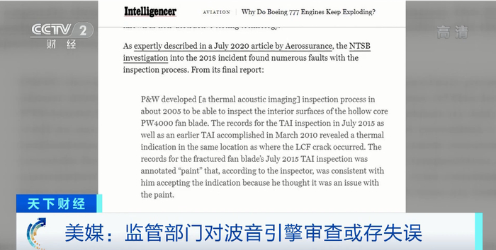 纽约杂志发布的最新报道引述美国国家运输安全委员会的调查报告指出,以往对于波音飞机的引擎审查似乎存在一定的失误。而在此前的引擎故障发生后,美国国家运输安全委员会也曾建议波音重新设计相关飞机的发动机罩,以更好地承受发动机故障的影响。