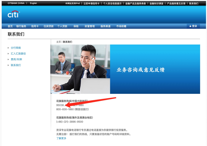 日前,记者在花旗银行官网上看到其服务热线,已经显示为“95038”。全国的用户通过“95038”即可获得花旗银行资深的专员提供的专业银行投资服务。