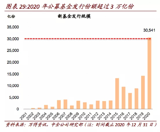 2020年新基金的发行量和2021年1月的募集规模,令人咋舌。今年以来,国内新基金发行总规模已经突破7千亿元,募集规模同比增长超过37%。
